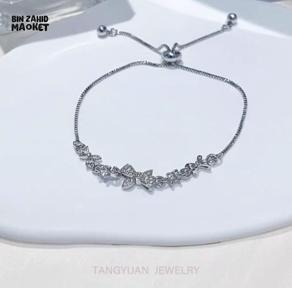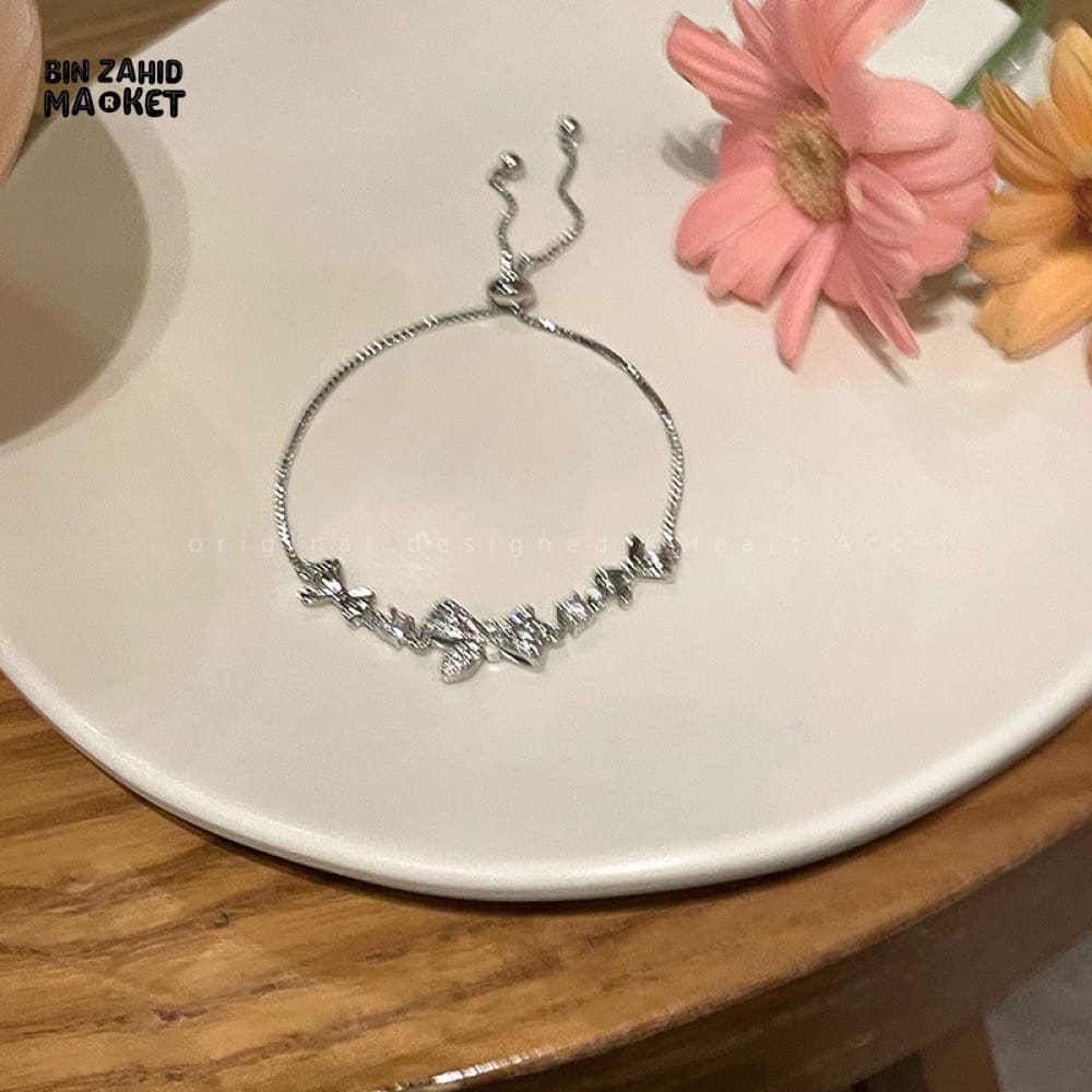 SHINY PINK CRYSTAL CHERRY BLOSSOM BRACELET MOON BOW FLOWERS ZIRCON GIRL JEWELRY